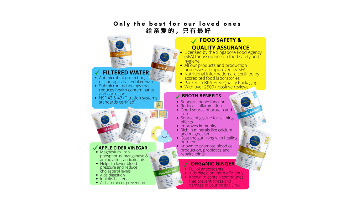 Soul Souper bone broths are made using only 100% natural & premium ingredients without any sugar, preservatives, additives, artificial flavouring or MSG and are crafted from carefully planned recipes with the single aim of providing the best quality bone broths without compromising on the taste. Also comes in sizes of 100ml BPA free packs for convenience of preparing small meals for babies & toddlers too!